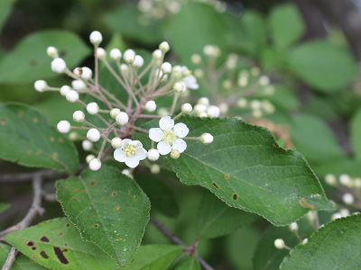 | ササバギンラン | ツクバネウツギ | アズキナシ | スノキ | コバノフユイチゴ | |