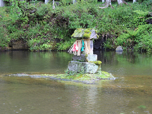 神々の命を受け まずは足場となる島…天瓊矛(あめのぬぼこ)でかき回しそれを上げ滴り落ちたしずくで島(おのころ島)※①が作られる、その島へ行き“どろどろに漂う国を整えて固めよ”と命を受けた伊邪那岐命と伊邪那美命…。 夫婦神 神話の中で人間味が出てくる始まりです、しかもその話は強烈です。内容をかいつまんでみると…イザナギがイザナミに自分の体がどうなっているか尋ねると“私の体には一つ足らないところがある”と答えるとイザナギは“自分の体には一つ余ったところがある”といい足らないところと余ったところを合わせてみようと提案する…イザナミOKする。結婚成立。 出産 第一子、最初はイザナミのほうから声をかけたため骨のないヒルコを産んでしまう『後にこの子は蛭子(恵比寿)になったといわれる』※②…天津神(あまつかみ)にこのことを相談すると今度はイザナギのほうから声をかけるようアドバイスされる…アドバイスよろしく二人は九州、四国、淡路島など八つの土地の神を産み、土地の神を産み終わると風、水、海、山、草など等次々に35の神々を出産した。 イザナミの死 最後に産んだ火之迦具土(ひのかぐつち)で陰部を焼いてイザナミは死んでしまう…激怒したイザナギは火之迦具土の首をはねてしまう。(そこからも何体かの神が産まれる) イザナギ、イザナミを葬る 出雲の国(島根)と伯耆の国(鳥取)の境にある比婆山にイザナミを葬る※③。 イザナギの悲しみは癒えず 悲しみ治まらず黄泉の国までイザナミを迎えにいく…もう既に黄泉の国の食べ物を食べたから帰ることができないとイザナミにいわれる…ますます落ち込むイザナギを見てイザナミは黄泉の国の神様に頼んでみるが決して覗かぬように告げる。…しかしあまりに長い時間待たされてつい覗いてしまった。 黄泉の国は 覗き見た黄泉の国のイザナミは八柱の雷神が体に巻きつき体にはうじ虫がわいていた。 約束を破られ恥をかかされ激怒したイザナミは イザナギに追っ手を仕向ける…追っ手の名は黄泉醜女(よもつしこめ)その追手をかわすためイザナギは黒御蔓(くろみかずら)を投げる、そこからブドウが生えその実を追っ手が食べている間に逃げる…再度追ってくると今度は御角髪(みかずら)の湯津津間櫛(ゆつつまぐし)を投げる、こんどはそこから筍が生え、それを追っ手が食っている隙に逃げ、その後もさまざまな化け物が出てきてそれを追っ払いして命からがらこの世とあの世の境の黄泉比良坂(よもつひらさか)まで逃げのび最後に坂ノ下の桃を3つ投げると追っ手は退散した。 黄泉の国を隔てる岩 イザナミが追ってきたときはもう遅くイザナギは逃げおおし黄泉比良坂(よもつひらさか)に岩を置き遮断する※④。その石越しにイザナギはイザナミに離縁を告げる、このときからイザナミは黄泉の国の大神になり置かれた岩は黄泉比良坂の境の神になる。 禊(みそぎ) 黄泉の国から命からがら逃げ帰ったイザナギは汚れた身を清めるため筑紫の国の日向の橋の小門の阿波岐原で禊をする※⑤。そのときに身に着けていたものから多くの神が産まれ最後に左目を洗ってアマテラス大神、右目を洗ってツクヨミ命、鼻を洗ってタケハヤスサノオ命が産まれる。 イザナギの最後の三人の子 イザナギは首にかけた玉飾りの玉緒をアマテラス大神に授け高天原を治めるように言い、ツクヨミ命には夜の世界を治めるように、スサノオ命※⑥には海原の国を治めるように命じた。 身を隠すイザナギ 黄泉の国へ行きたがるスサノオ命、それで泣きやまぬため海、河は干上がり木々は枯れるなどの災害が起こる、思いあまりイザナギは海原の国からスサノオを追放し自らも身を隠した。 |