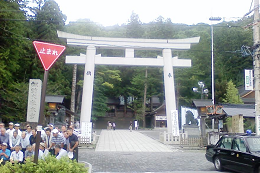 | ますます険悪になり次にアメノオハバリを遣わそうとしたがこの場合は、私の子タケミカヅチがいいでしょうとアメノオハバリは推薦、ということでタケミカヅチとアメノトリフネを下界へ派遣…二人は出雲の国の伊耶佐(いざさ)という小浜※⑤に降り立って長い剣を抜き、海の波に逆さまに刺し立て、あぐらをかいて座りオオクニヌシにこの国はアマテラスがその子に支配する国と命じたものだがどう思うかと尋ねるとオオクニヌシは私の子コトシロヌシノカミが答えるが、彼は鳥を狩、魚を取るために美保の岬※⑥へ行ったまままだ帰ってこないというとアメノトリフネを遣わしコトシロヌシを連れてきて問いただすとコトシロヌシノカミは天の神様のお子様に差し上げたほうがよいと進言。まだ他に言いたいことがある子はいるのかとオオクニヌシに尋ねるとタケミナカタ以外はいませんと答える。怪力タケミナカタをいとも簡単にタケミガヅチが投げ飛ばすと信濃の国の諏訪湖(諏訪大社)※⑦まで逃げて命乞い…葦原の中つ国はアマテラスの子のものに。 |