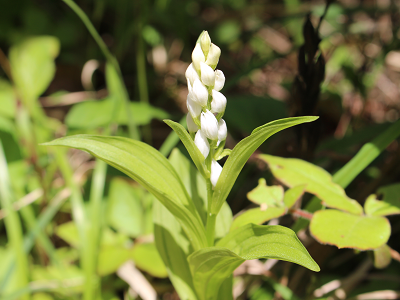 山口県では絶滅危惧ⅠA類に指定されている植物です。ギンランより背が高く花序より下の葉が花の高さと同じくらい伸びるかそうでないものは花序の茎に針状の産毛があるのが特徴です。