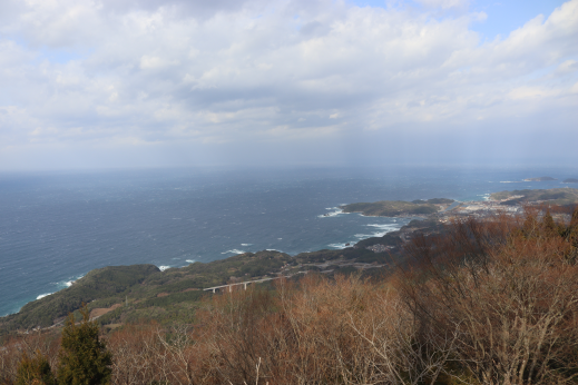 島根県浜田市にあります。大麻神社社務所の駐車場に車を置きそこから階段を上り本殿にお参りして山頂に向かいます。山頂には奥の院らしき祠があります。その奥に展望台がありそこからの眺めは日本海を望むことができます。